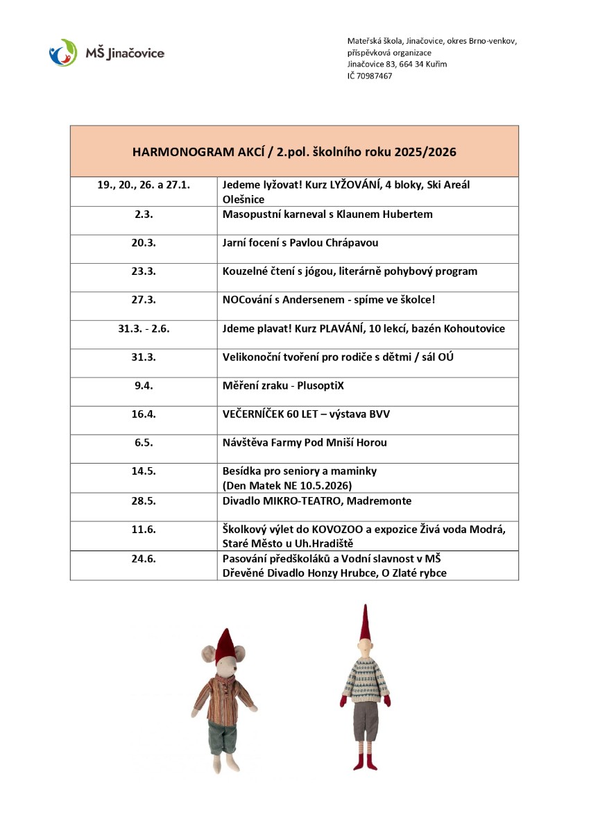 Harmonogram akcí 2.pololetí 2025/2026