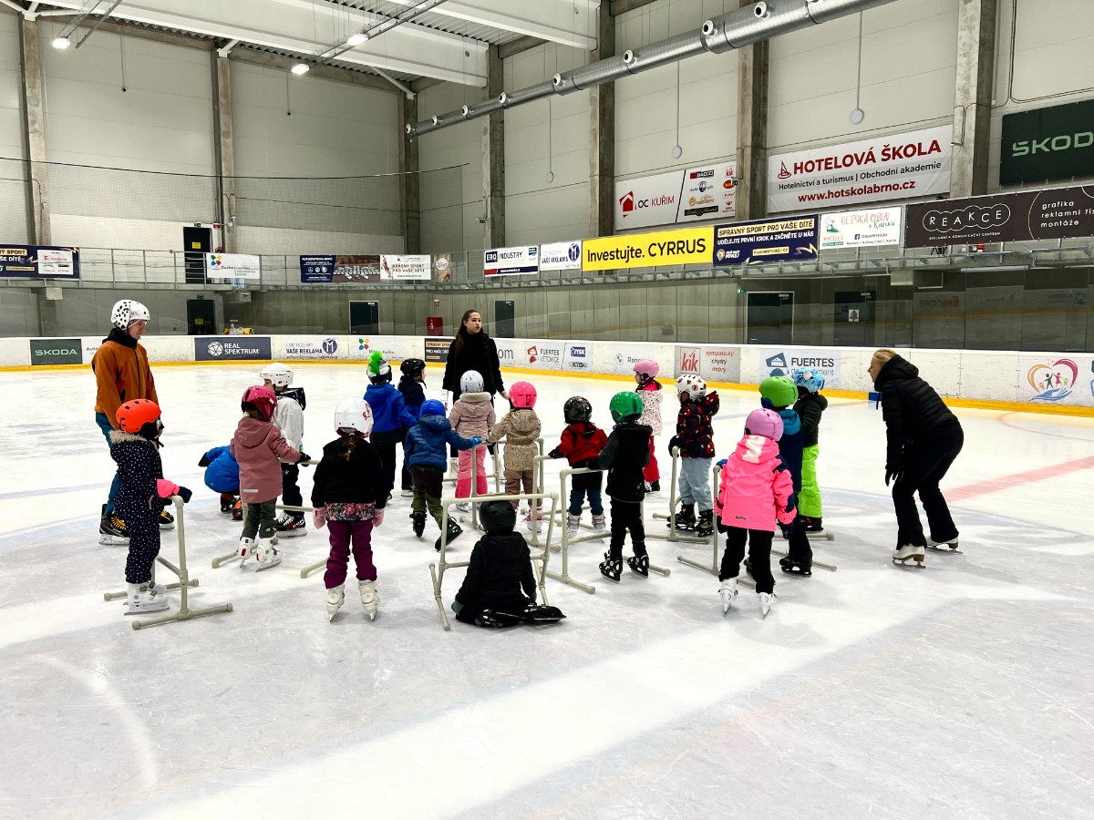 V termínu 31.10.-28.11.2025 probíhá kurz bruslení na Zimním stadionu Kuřim. Naši nejen předškoláci se učí základy bruslařské techniky, abychom následně - po loňské úspěšné premiéře - mohli v zimních měsících vyjet opět na venkovní kluziště Tee Pee na brněnské přehradě.